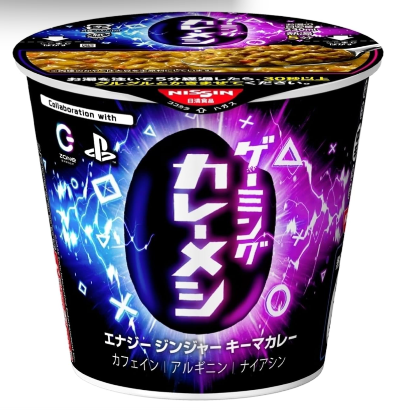 日清食品が提供する「ゲーミングカレーメシ」。覚醒と興奮を促すカフェイン、アルギニン、ナイアシンが含まれている。機材を汚しにくくするため、汁は入っていない。エナジードリンク成分が配合されたこの食品を、子どもたちも当然のように食するであろう。ゲームをしながら「ながら食事」をするのでなく、ゲームをいったんやめて食事をすることは食育の基本である。昨今、企業の社会的責任CSRとして目指す社会の方向性が問われるが、日清食品は子どもたちの未来社会に食品メーカーとして何を提供したいのだろうか…